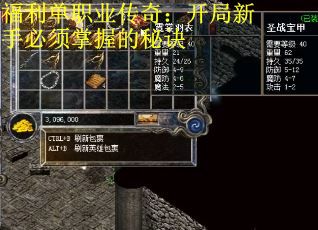 福利单职业传奇是一款经典的网络游戏,吸引了无数玩家的喜爱。对于新手而言,开局的顺利与否至关重要。以下攻略将为您详细介绍开局阶段必须掌握的秘诀,助您快速上手,轻松畅玩。